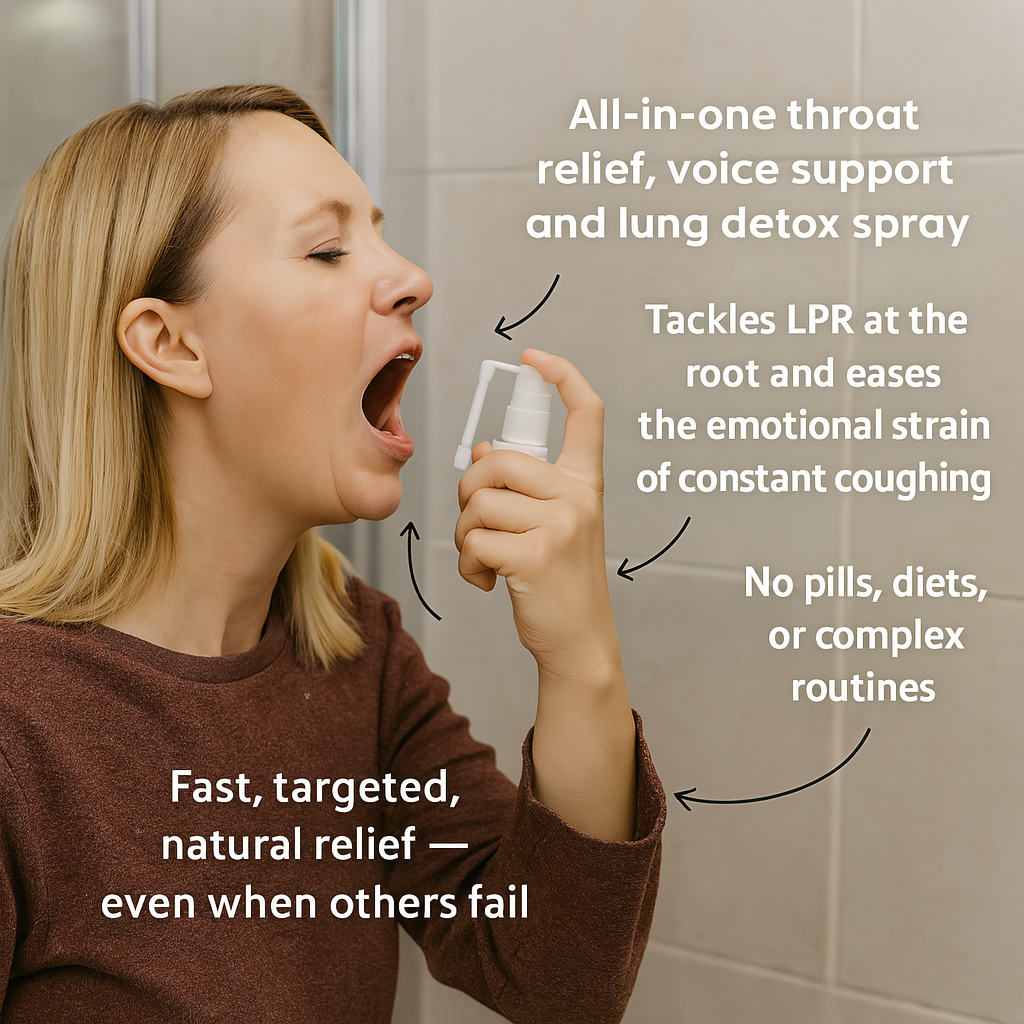 Unlike lozenges or pills, this spray addresses the root cause of throat irritation: LPR.